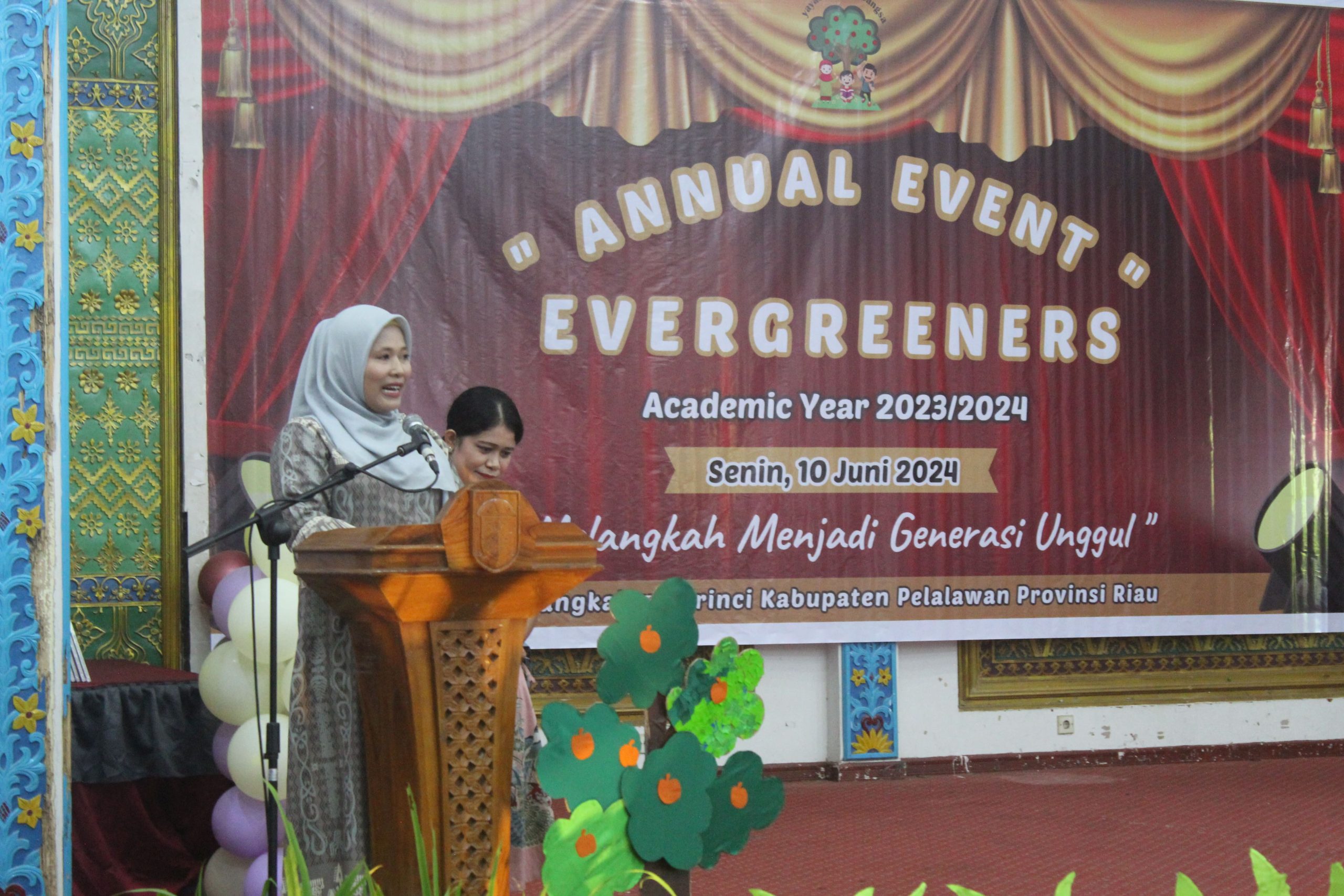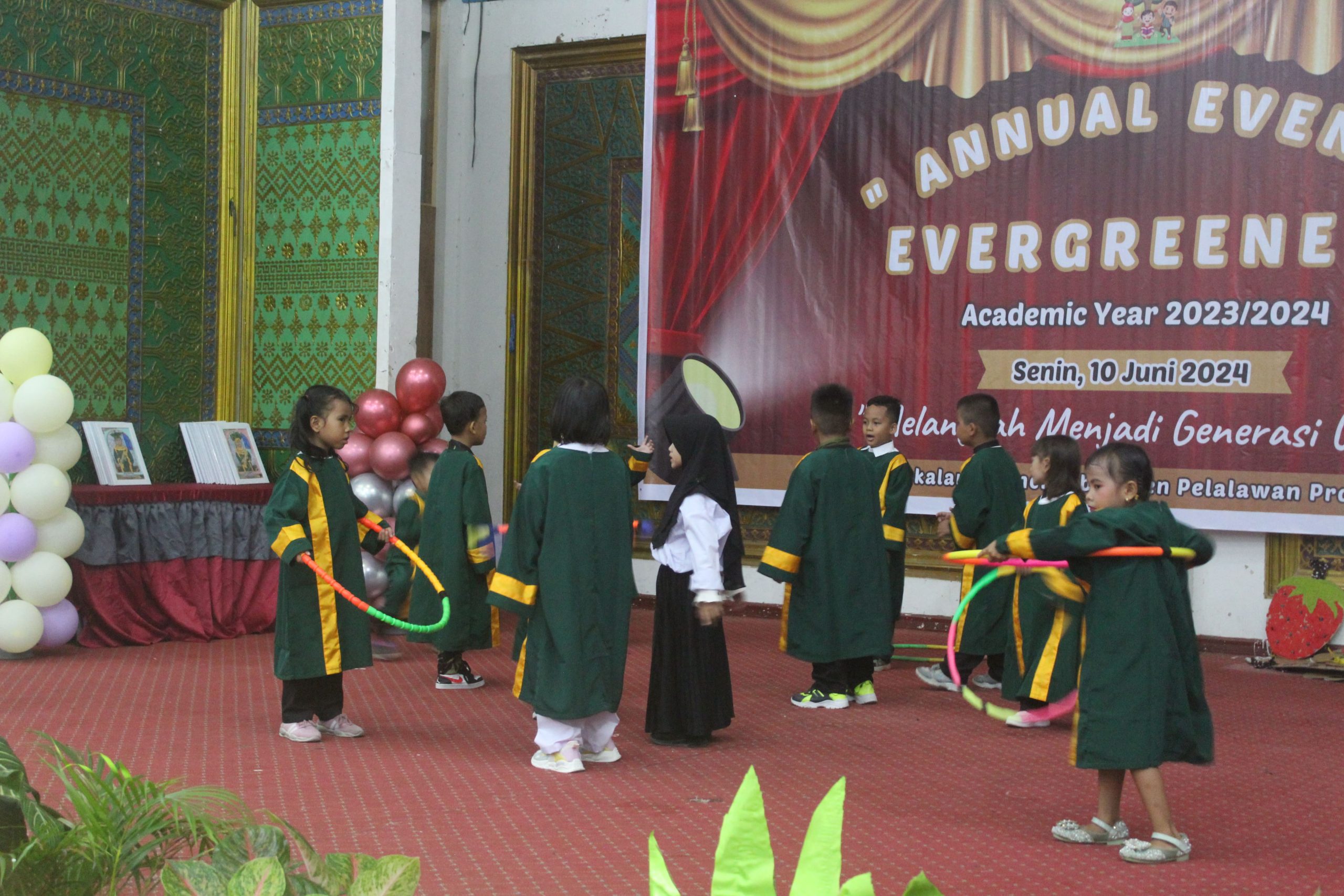 Kegiatan perpisahan PAUD-TK Evergreen pelalawan yang dilaksanakan di gedung daerah pangkalan kerinci sukses dilaksanakan. semoga anada akan terus berkembang dan menjadi generasi emas penerus bangsa.